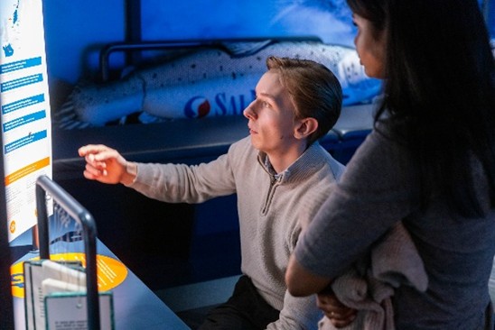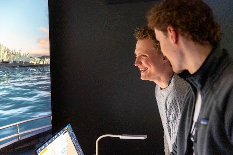 Samlingen bød også på et variert program med praktiske opplevelser. Studentene fikk blant annet en rundtur på verkstedene på Marøystrand – et svært aktivt og innovativt miljø for leverandørbedrifter til havbruk. I tillegg besøkte de Sikkerhetssenteret, hvor båtsimulatorer og VR-briller var spesielt populære, og de fikk oppleve laksenæringen tett på gjennom et besøk til merdkanten.